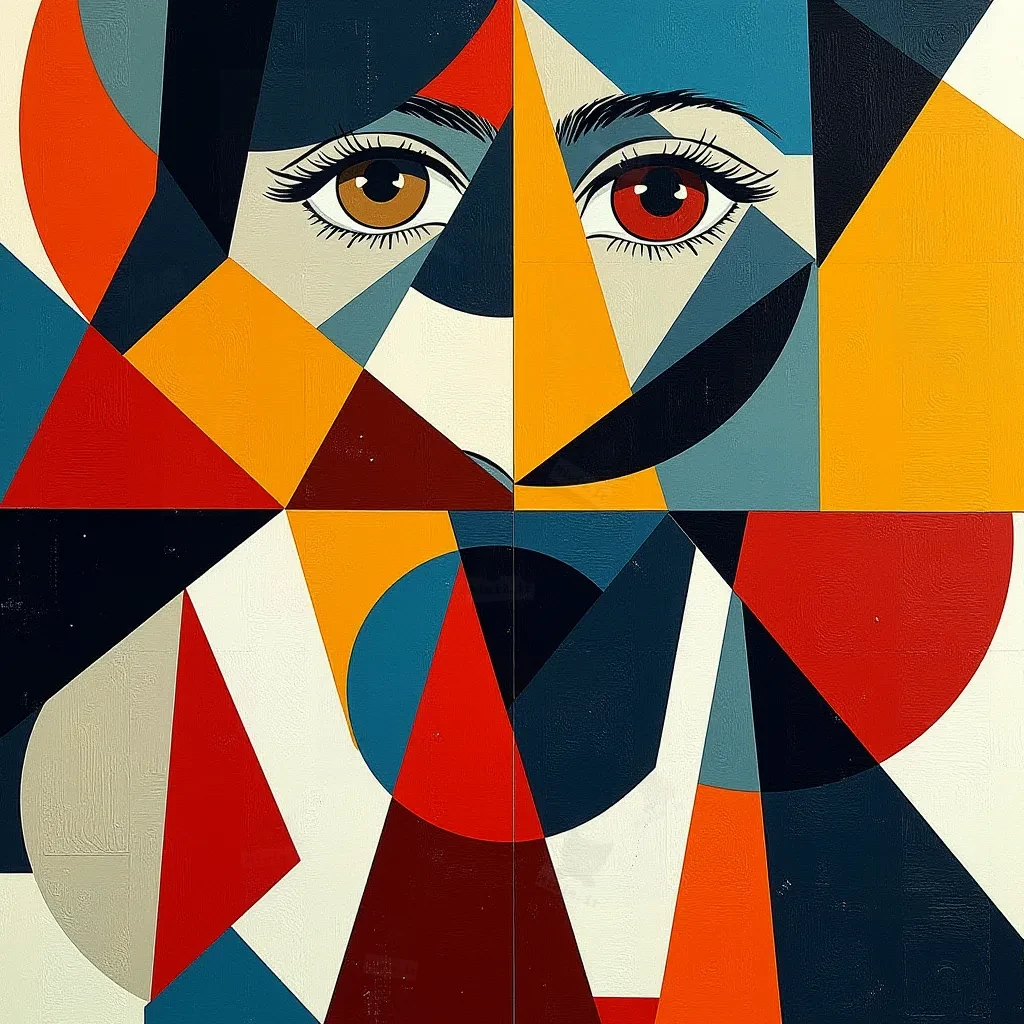 تابلوی «چهره در هندسه رنگها» اثری دیجیتال با سبک انتزاعی و مدرن است که نگاهی نو به پرتره را به تصویر میکشد. چهرهای بیاحساس، ساختهشده از اشکال هندسی در رنگهای آبی، زرد، قرمز و مشکی، در مرکز تصویر قرار دارد. پسزمینهی سفید، جلوهای برجسته به ترکیب رنگی و ساختار بصری اثر میدهد.