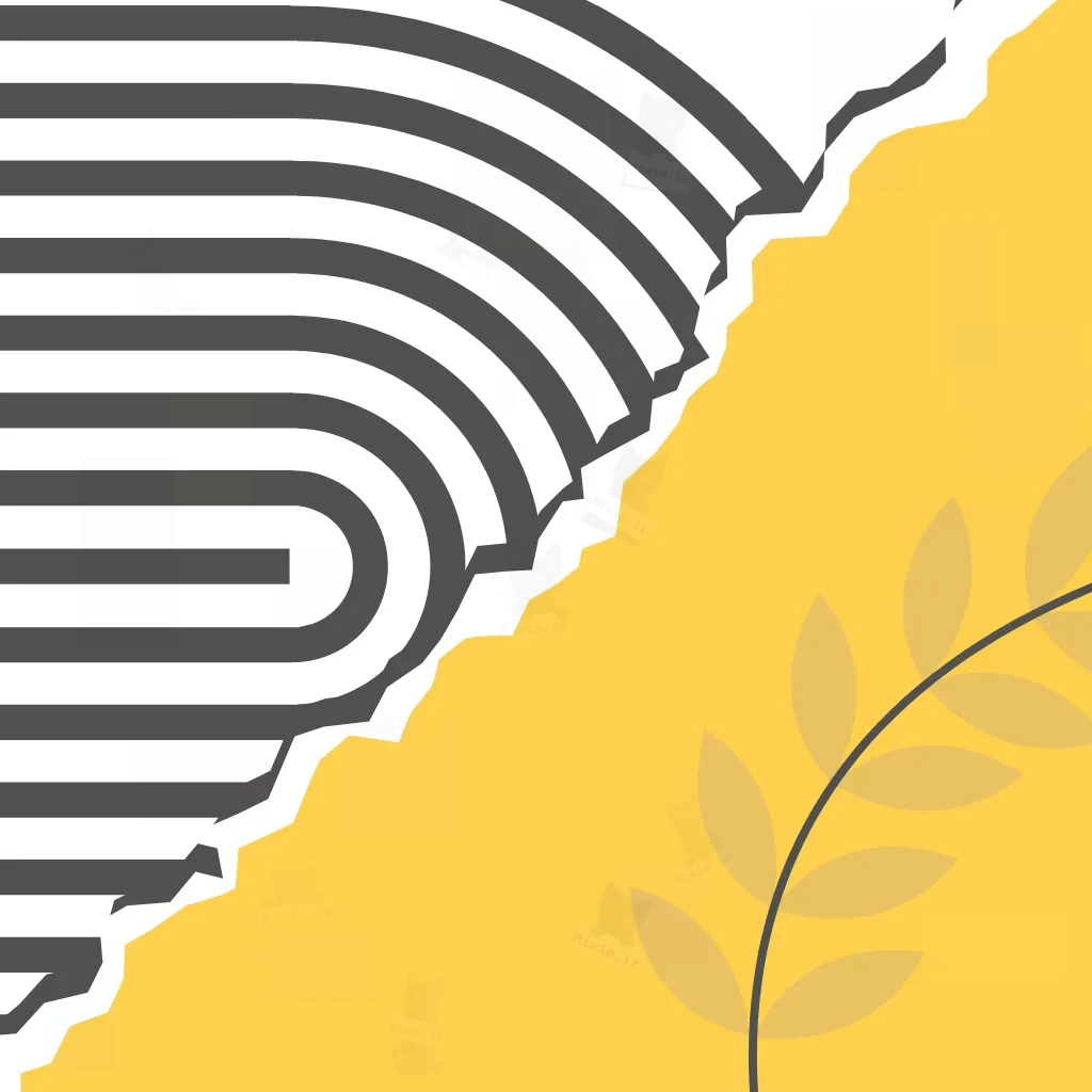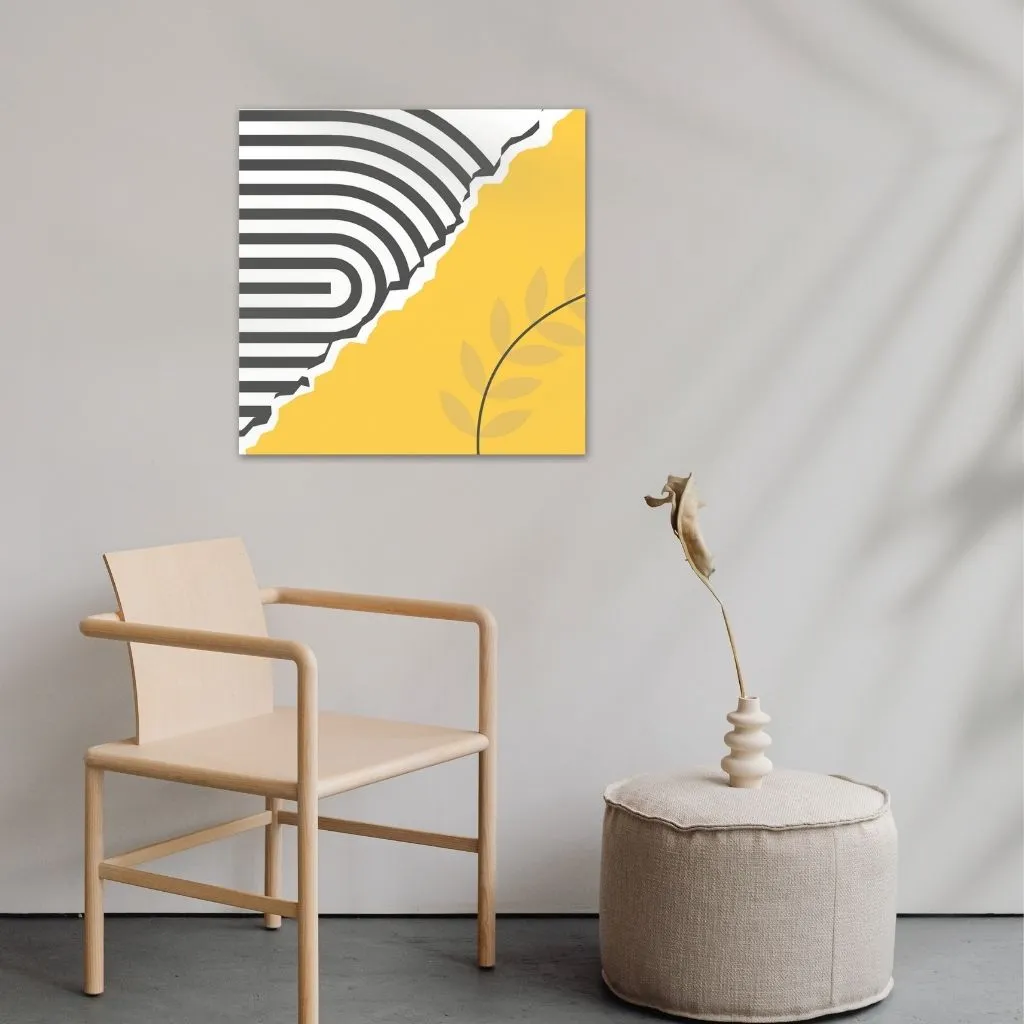 ترکیبی مینیمال از نوارهای سیاهوسفید، گرادیان زرد و برگهایی خاکستری؛ تابلویی مدرن با ساختاری متوازن و چشمنواز.
