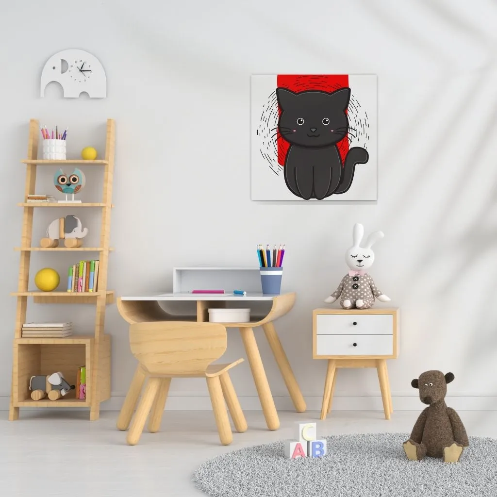 ترکیبی جذاب از رنگ سرخ پرانرژی و گربهای بامزه با نگاهی شیطنتآمیز؛ مناسب برای فضاهای مدرن، جوانپسند و خلاق.