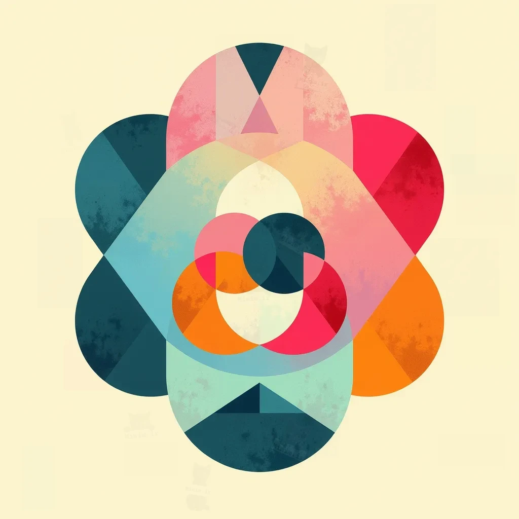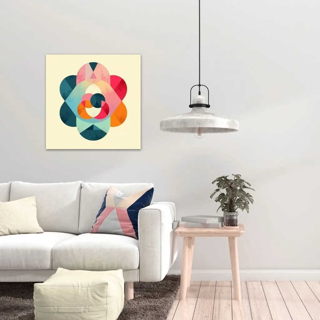 شکوفهای انتزاعی از شکلهای هندسی و رنگهای پاستلی؛ مناسب برای فضاهای مدرن با سبک مینیمال و هنری.