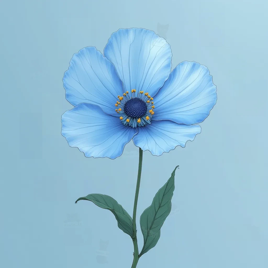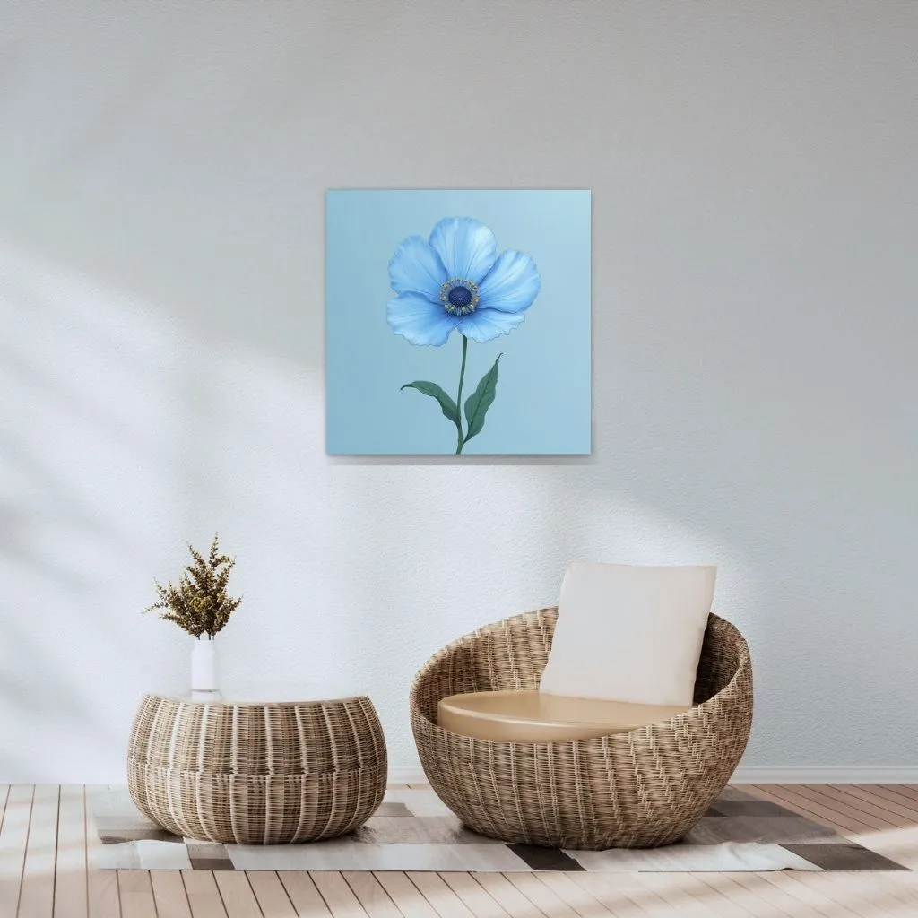 ساقهی کشیدهی گل، دو برگ دارد که به رنگ آبی روشنتر طراحی شدهاند و با پسزمینهی آبی ملایم، هارمونی بصری زیبایی پدید آوردهاند. این تابلوی تکگل، با طراحی ساده و ساختار منظم خود، گزینهای ایدهآل برای دکوراسیونهای آرام، مینیمال و الهامگرفته از طبیعت است.