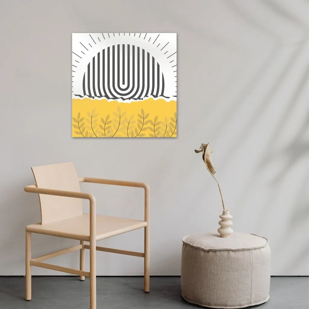 ترکیبی از رنگ زرد پرانرژی، فرمهای گرافیکی منظم و شاخههایی نمادین؛ این تابلو انتخابی خاص برای فضاهای مدرن و مینیمال است.