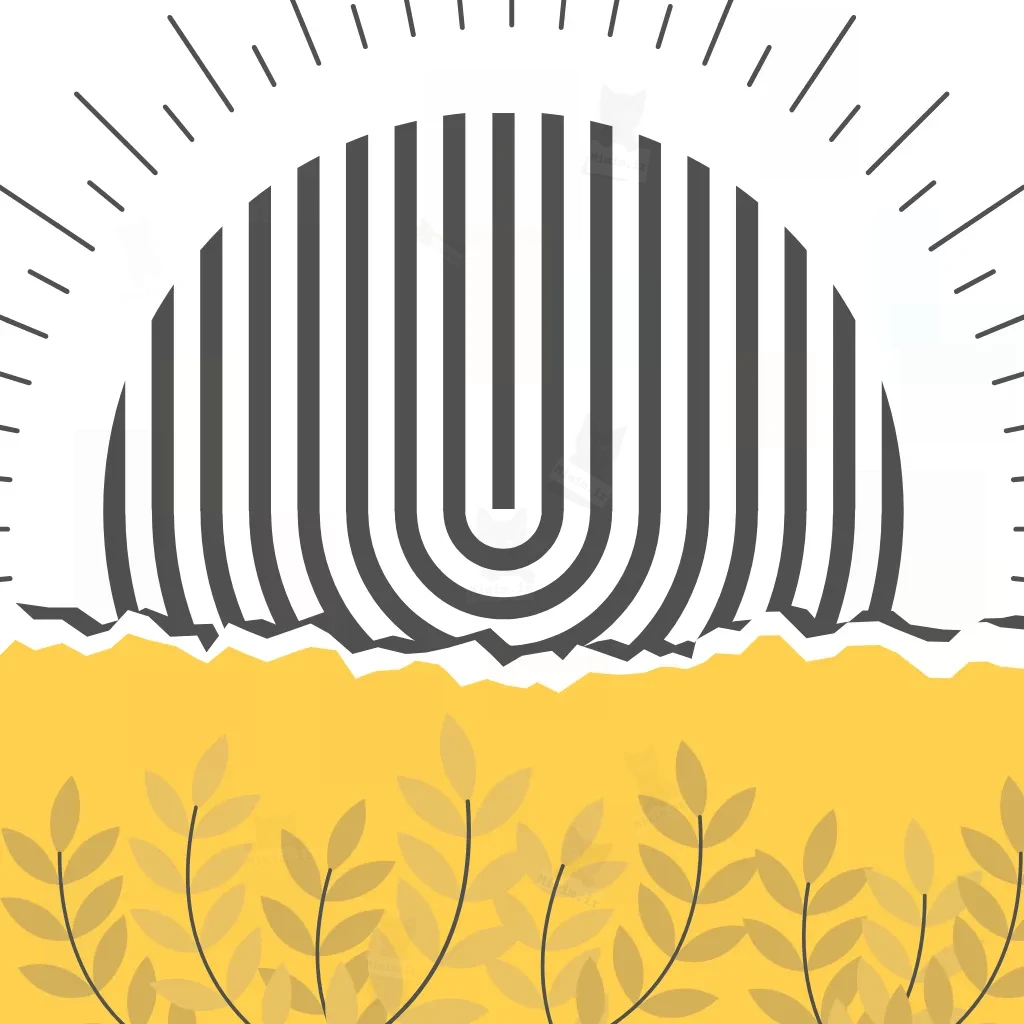 ترکیبی مینیمال از نوارهای سیاهوسفید، گرادیان زرد و برگهایی خاکستری؛ تابلویی مدرن با ساختاری متوازن و چشمنواز.
